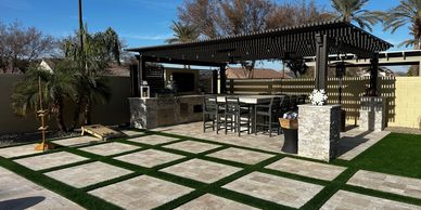 Transform your backyard into the ultimate entertainment space with a custom outdoor kitchen. Designed for Arizona’s climate and lifestyle, our outdoor kitchen installations blend functionality with style—featuring built-in grills, countertops, storage, and seating areas tailored to your space. Whether you're hosting family gatherings or entertaining guests, an outdoor kitchen adds value, convenience, and luxury to any landscape.